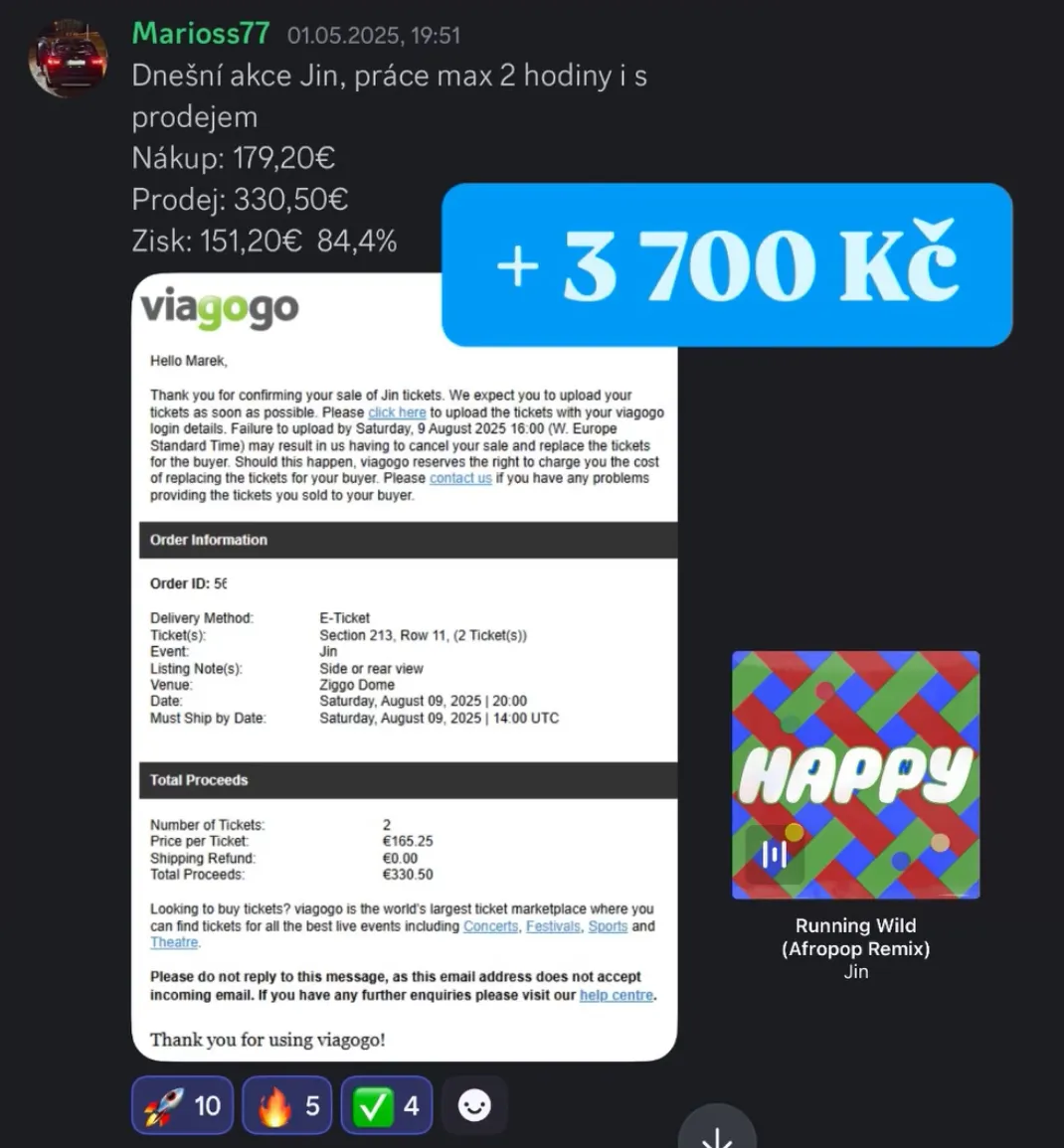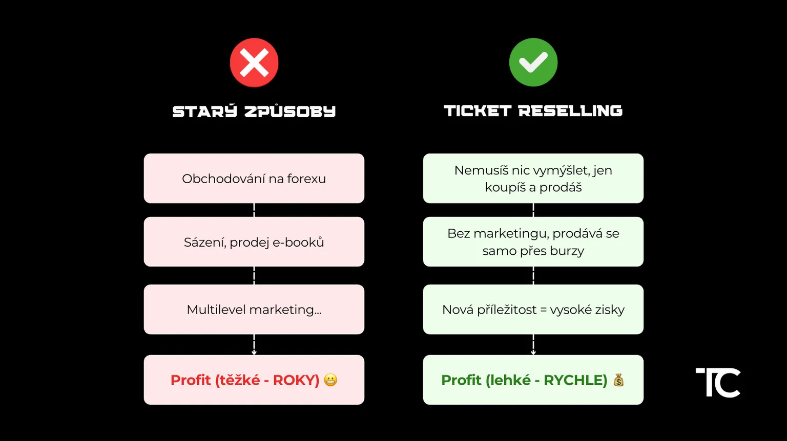➡️ Získáte návod a přesný postup, jak začít s přeprodejem vstupenek a jak díky němu vydělat co nejrychleji první peníze.